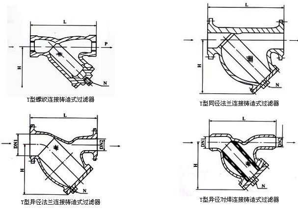 其類型分為:SY型水過(guò)濾器;QG型汽(氣)過(guò)濾器;YQ型過(guò)濾器 連接方式如下:GL41H法蘭連接;GL11螺紋連接;SLVY手搖刷式法蘭連接;Y型(YSTFH)拉桿伸縮式法蘭連接;絲扣連接;對(duì)焊連接;